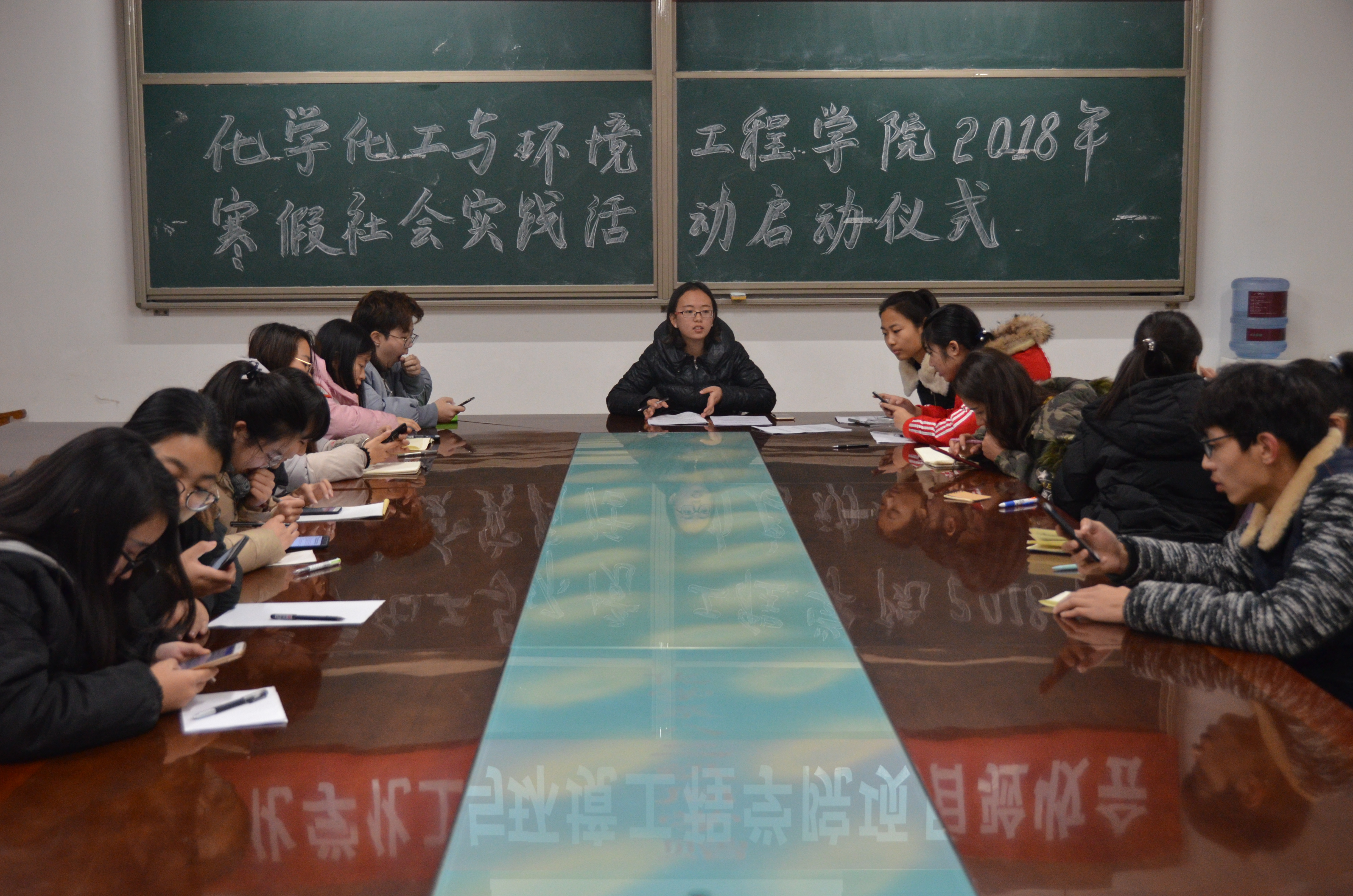 为了促进同学们走出校门,融入社会,提升个人能力,丰富自身阅历,增长见识,化学化工与环境工程学院于2018年1月4日晚在人合楼8213教室举行了2018年寒假社会实践活动启动仪式,本次会议由学生会秘书长张丽君主持,2016级、2017级各班团支部书记参加了本次会议。 会议伊始,秘书长张丽君对本次会议的内容进行了详细介绍,对潍坊学院共青团委员会下发的文件进行了详细的解读,倡导同学们走出校园,走进社会,积极开展社会实践活动,各团支部需要精心策划。她对本次活动提出几点要求:一是接地气,要尽量选择一些与自己所学专业相符的活动;二是要高标准、高质量的完成本次活动的实践报告;三是保证同学们的人身安全和财产安全。活动过后,将活动过程中所拍的照片、视频,以及自己所写的实践报告统一发送至邮箱,再进行筛选,选出优秀作品进行下一步评比推荐,从而有获得优秀个人、优秀团支部等一系列荣誉的资格。 本次活动既考验了学生干部的工作能力,也增强了班级凝聚力,更能增强同学们的社交能力,更希望同学们能够在此次活动中得到不菲的收获。