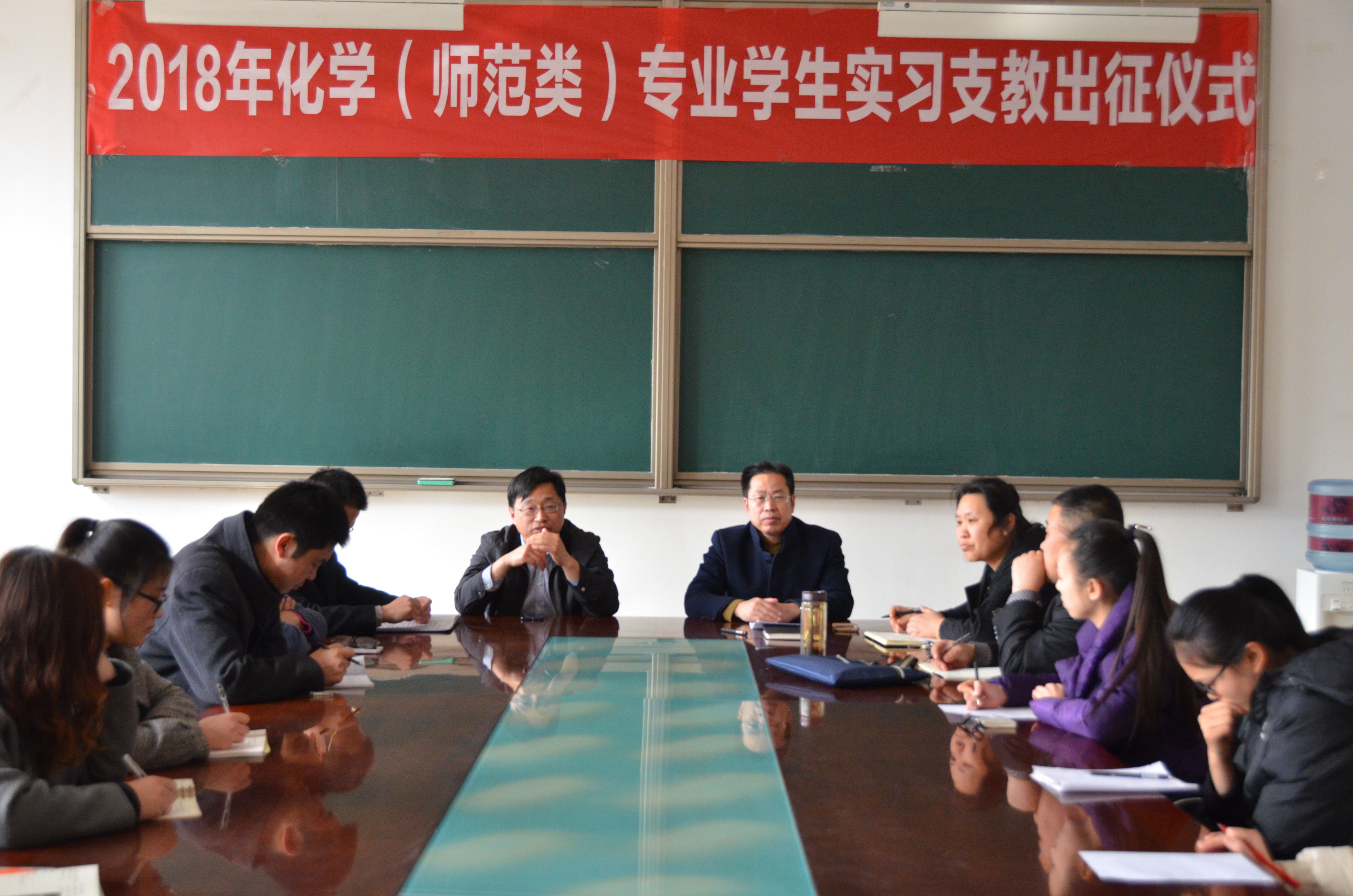 3月5日下午,化学化工与环境工程学院在人合搂8213教室举行化学(师范类)专业学生实习支教出征仪式。党总支书记张华、院长王林同、党总支副书记孙玉凤、副院长台夕市、学生工作办公室主任杨华、团总支副书记马永生、指导老师冯一民以及15级化学专业全体学生出席本次仪式。