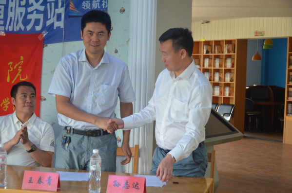 孙志达理事长永生书记签订了《共建潍坊学院大学生社会实践基地协议书》,签字盖章后,双方握手致意。最后由孙书记和邱君部长一起为实践基地揭牌。