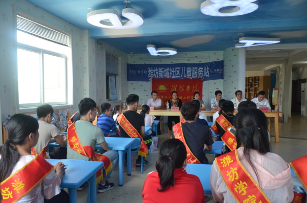519日上午,化学化工与环境工程学院晨曦志愿者服务队社会实践基地签约揭牌仪式在潍城区壹乐园儿童服务站举行,共青团潍坊市志愿者工作部邱君潍城区文明办主任王春青,共青团潍城区委书记孙超潍坊市志愿者协会副理事长、鸢都义工公益服务中心理事长、潍坊市领航社会工作事务所理事长孙志达,新城社区居委会副主任李俊华化院党总支副书记孙玉凤团总支副书记马永生壹乐园的工作人员和晨曦志愿者服务队的志愿者们共同参加了本次活动。
