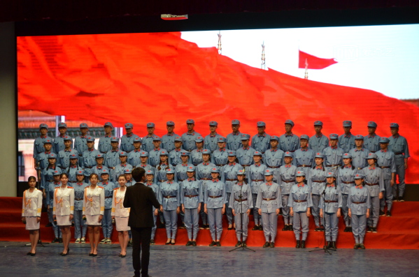 首先由美术学院拉开了这场比赛的序幕,他们精彩的表演慢慢将比赛推向高潮。之后各个学院激烈地角逐,第十八个上场的是化学化工与环境工程学院合唱团,曲目是《吃水不忘挖井人》,成员统一身着新四军服装,以饱满的精神面貌和洪亮的歌声打动了现场的每一位观众,彰显了同学们坚定、自信的气势。荣誉的背后是同学们牺牲自己的休息时间,付出艰辛劳动的结果。合唱队的每一位同学在老师的指导下,唱功愈发精进,都以饱满的热情投入到枯燥的训练中,他们不断的揣摩,纠正音准,调整队形,力求达到唱功和动作最佳效果,台下的指导老师也为合唱团加油打气,建立信心,集体荣誉感是每一个成员进步的共同动力。