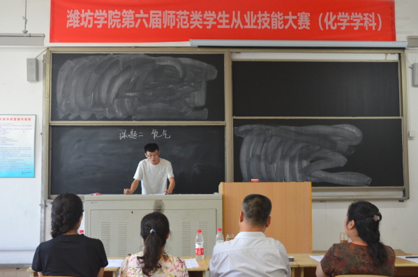 本次大赛根据山东省教育厅《关于举办第六届山东省师范类高校学生从业技能大赛的通知》要求,分为三个阶段:初赛、复赛、决赛,学院5名教师担任本次比赛的评委,评委根据评分细则从教态与表达、教学内容讲述、课堂气氛掌控、教学方法与手段、教学效果、个人特色、钢笔字书写等多方面对选手进行综合成绩评定。参赛选手依次上台展示,他们用自己的独特方式去带动课堂的气氛,让“同学们”沉浸在化学的知识海洋中。有的同学讲课方式很新颖,他用做实验的方法带动同学们的积极性,声音洪亮,足以让班里的每个同学都沉浸其中;有的同学的课堂很风趣,充满活力,让观摩同学不会走神、打瞌睡。每位选手都为本次大赛做了充足的准备,讲课的时候都表达清晰、落落大方、教态自如,展示了师范类学生过硬的基本功和专业素养,赢得了评委老师们的一致好评。经过激烈角逐,每个学段分别评选出一等奖1名、二等奖2名、三等奖3名,部分优秀选手将作为学校代表参加山东省举办的教学技能比赛。