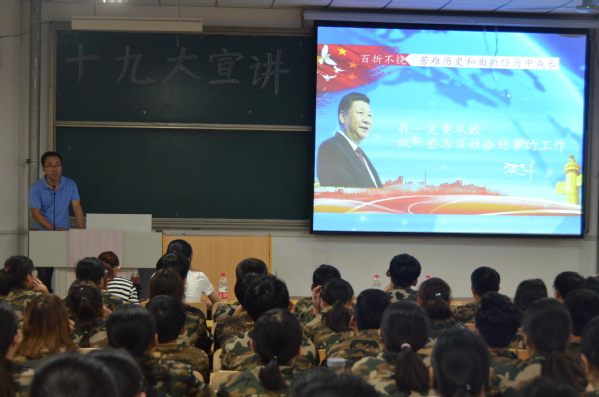 首先,姜廉毅书记以《坚定理想信念,担当民族复兴大业》为题从历史为什么选择中国共产党、历史为什么选择习近平作为我们的总书记、大学生为何要坚定理想信念、勇做实现民族复兴大业的时代新人等方面展开,他鼓励当代青年要把握当下,勇做中国复兴大业的新人。张芳芳主任则以“以梦为马,青春不老”、“实现中国梦,青春正当时”、“走好人生路,青春永不悔”、“开启新征程,青春勇担当”为主题进行宣讲。她对即将面对新征程的同学们提出要求:一要筑梦而行,要有梦想、有方向;二要敢为人先;三要惜时如金。最后学生党员高婕从党取得的辉煌成就对青年的启示、青年理想信念及自身取得的先进事迹入手,她鼓励同学们努力学习科技文化知识,全面提高综合素质,自觉把个人理想与追求融入国家和民族的事业中。宣讲活动在热烈的掌声中圆满结束