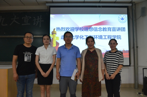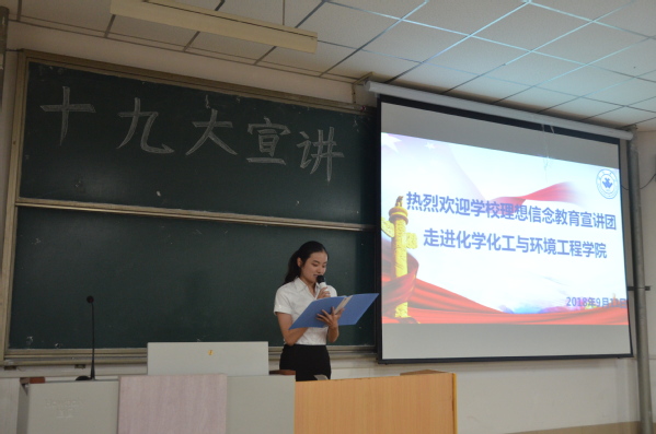 9月11日晚上,学校理想信念教育宣讲团走进化学化工与环境工程学院,在人合楼8421教室为2018级新生作了一场沁人肺腑的宣讲,让聆听的每一位同学都感到了触动。宣讲团成员由文学与新闻传播学院党总支副书记姜廉毅、物理与光电工程学院学工办主任张芳芳、外国语学院学生党员高婕组成,党总支副书记孙玉凤主持了会议。