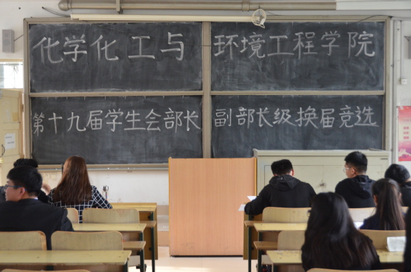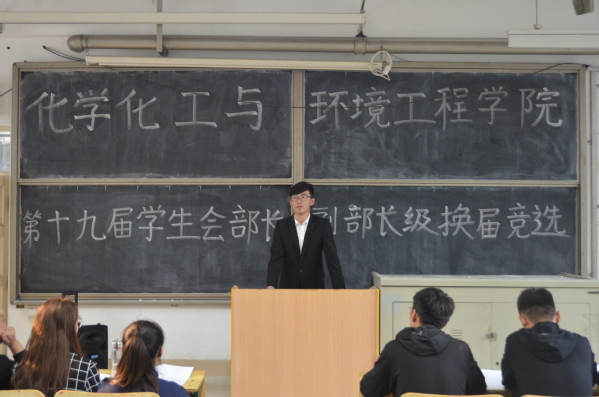 10月14日,化学化工与环境工程学院举办了第19届学生会部长、副部长竞选活动。第18届学生会主席马超、第19届学生会主席赵志浩以及主席团成员参加活动并担任评委,2017级学生会干事们参加了竞选演讲。