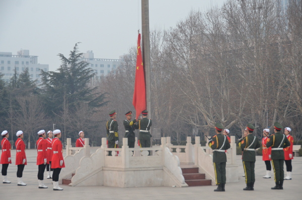 225日,是新学期开学第一天,化学化工与环境工程学院在行政楼广场组织了学校新学期首次升旗仪式,并开展“实干铸梦想,青春勇担当”主题教育活动。党总支副书记孙玉凤、学工办主任杨华、团总支副书记马永生、辅导员李强、高祥以及20172018级全体同学参加了升旗活动。