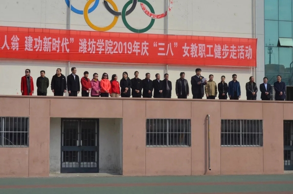 为丰富广大女教职工体育文化生活,增强身体素质,促进各单位之间的交流沟通,展现新时代妇女风采,2019年3月8日,潍坊学院举行“当好主人翁,建功新时代”女教职工健步走活动。化学化工与环境工程学院全体女教职工参加了本次活动。