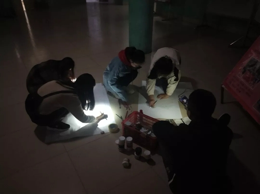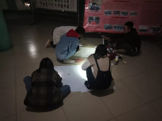 3月25日晚,化学化工与环境工程学院学生会宣传部成员于人合楼二楼大厅绘制主题为“新学期,努力仍在”的宣传展板。