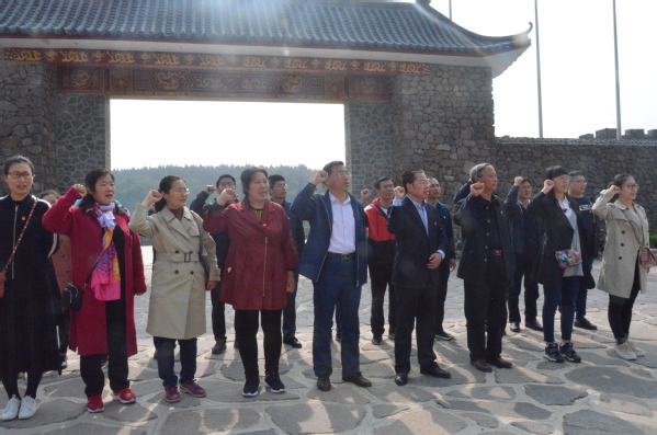 参观结束后,教工党员们面向党旗宣誓,重温入党誓词,始终铭记入党誓言,也是对自己的一种鞭策和激励。返程的路上,教工党员们仍旧热情不减,对本次现场教学进行讨论,大家一致表示,通过参观学习全体党员感受到了革命先烈不怕牺牲、众志成城的伟大精神和坚定信念,受到了一次深刻的党性教育。