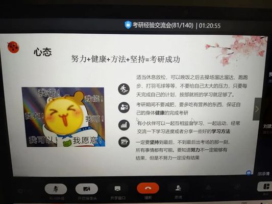 此次线上考研经验交流会充分发挥了学长学姐们的引领作用,进一步加深了同学们对考研的认识和理解,坚定了同学们的考研信念。希望同学们能够根据学长学姐们分享的经验制定好属于自己的复习计划,调整好心态,努力进步,相信终有一天会抵达理想的象牙塔。