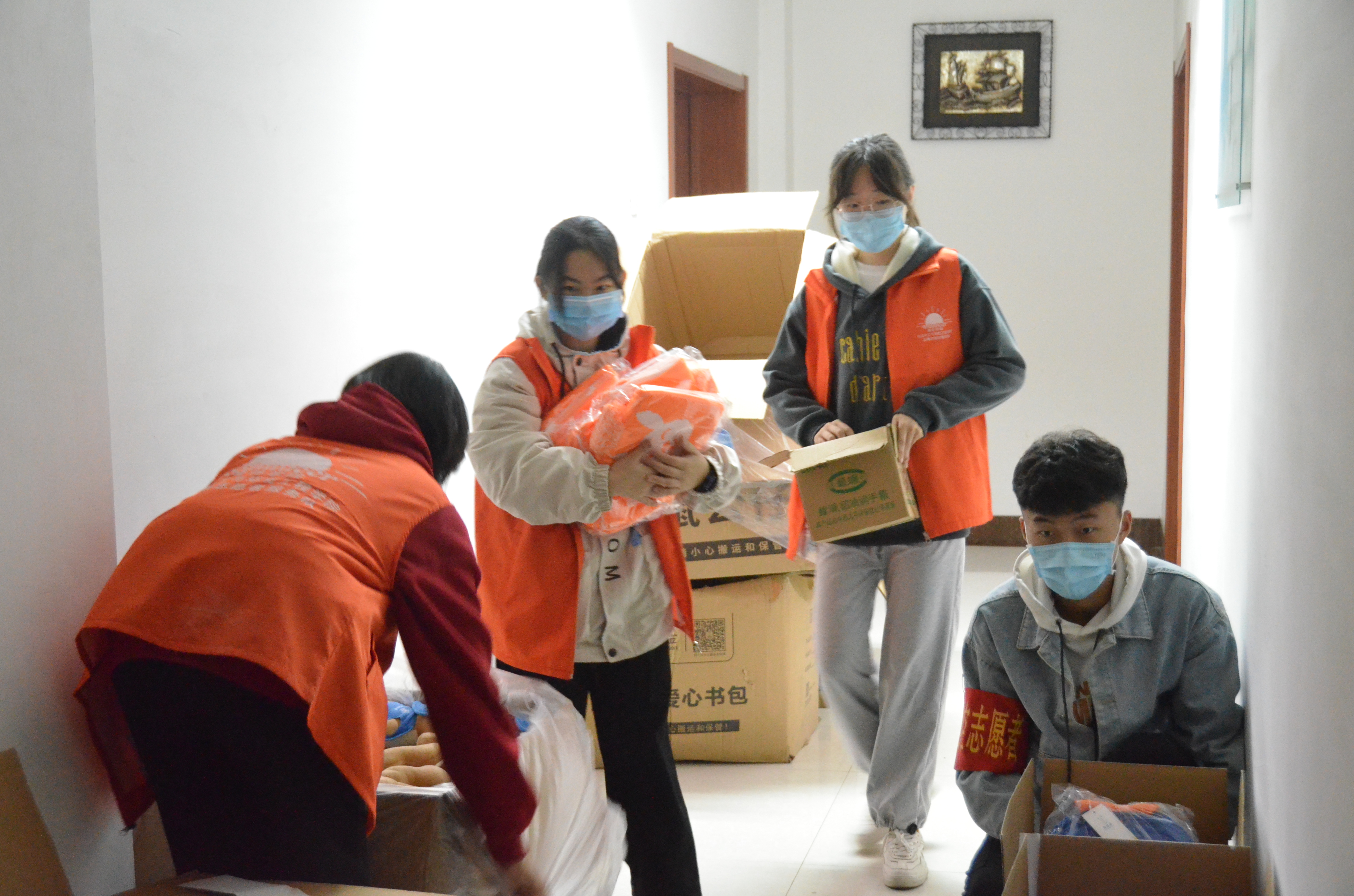 在工作过程中,每一位志愿者都积极地搬运箱子,合作互助,很快便将98箱物资转移到走廊,准备进行下一步的分装工作。分装过程中,两院志愿者们合作分工,高效率地进行分装各类物品、封箱、转移等工作。在志愿服务过程中,各志愿者不怕苦、不怕累,争分夺秒,尽己所能多干快干,为山区的孩子们分装更多的温暖包。在志愿者们的共同努力下,最终将98箱物资分装成400多箱温暖包。