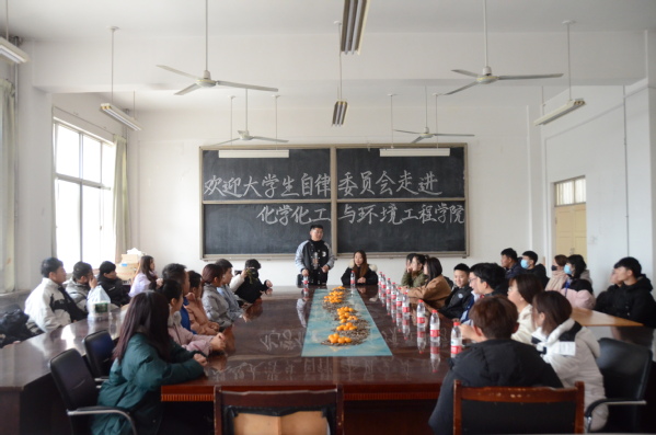 为拉近校自律委与我院之间的距离,进一步明确校自律委量化检查的标准,力求化院学生会自律中心与校自律委量化检查的标准一致,加强校自律委与化院学生会间的联系,12月10日中午,校大学生自律委员会副主席王雨朦携各部门代表走进我院,交流座谈会于人合楼8213举办。我院学生会主席柴振全,学生会副主席张雪、路建烁、王海雯、相关部门部长以及20级各班班长一同参加了此次交流会。