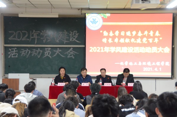 会上,首先由王林同院长宣读了《化学化工与环境工程学院2021年学风建设实施方案》,方案中提出学风建设主题为“勤奋学习逐梦奋斗青春,增长本领献礼建党百年”,提出对学风状态排行榜制度进行修改完善,全面实施学业导师制、进行考研情况分析、把学风建设表彰和企业奖学金评选相结合等。王院长强调指出要把 “学在化院”学风建设推向深入,提升学风建设的水平。随后,学生会主席柴振全代表全体学生作了表态发言。发言中表示将严格执行学风建设的各项规章制度,做好学风状态排行榜与课堂记录表等工作,督促学生们养成良好的学习习惯,提高学习能力,营造良好的学习风气。张华书记作了学风建设活动动员讲话,提出了加强学风建设的重要意义,强调学风建设活动的落实措施,要求大家要明确责任,构建学风建设的长效机制,激励同学们更加积极认真投入学习,用自己的实际行动赋予“学在化院”更多的内涵,使其更加富有生命力。会议最后,孙玉凤副书记强调了学生公寓安全隐患整治工作的重要性,鼓励同学们要在专业学习、组织纪律、活动参与、班级管理`宿舍建设和综合素质提升等方面做得更好,“一行胜千言”,要付诸行动坚持奋斗。