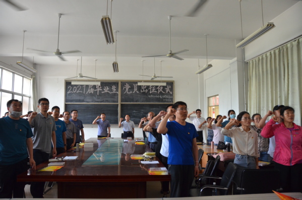 与会全体党员佩戴党徽,举起右拳,在党员代表张洪艳老师的带领下,面向党旗,重温入党誓词,庄严宣誓“我志愿加入中国共产党,拥护党的纲领,遵守党的章程……”全体宣誓人目光坚定,铿锵震撼的誓言在会议室内久久回荡。