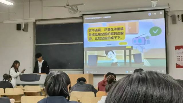 活动以宣讲、观看视频、交流的形式展开。各班班委带领同学们进行了减灾防灾法律法规的学习,鼓励同学们提前学好相关知识,突发事件发生时才能沉着冷静应对。同学们观看了以各类灾害应对方法为主要内容的防灾减灾视频,视频中以正确和错误措施躲避灾害所导致的结果为例,警示同学们要科学减灾,正确应对灾害。同学们通过视频学习进一步掌握了相关知识。在收看完视频后,同学们还积极开展了减灾防灾的讨论,针对目前各种突发的常见灾害分享自己的防灾知识,通过讨论重温了在此次活动中学习到的新的风险防范知识,加强了同学们对于灾害预防的认知。此外,全体同学还参加了潍坊市“5.12”防灾减灾知识竞答活动,学习了更多知识。