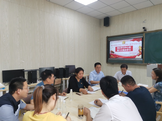 2022628日,化学化工与环境工程学院党总支理论学习中心组举行2022年第六次集体学习,学校理论学习中心组列席旁听工作组成员数学与信息科学学院党总支书记周莹、正科级组织员张德辉列席旁听中心组学习。党总支书记王元森主持学习,党总支副书记、院长台夕市,党总支副书记孙玉凤,正处级组织员陈子文,党总支委员、学生党支部书记马永生、教师第一党支部书记赵星岭、教师第二党支部书记王延青参加了学习。
