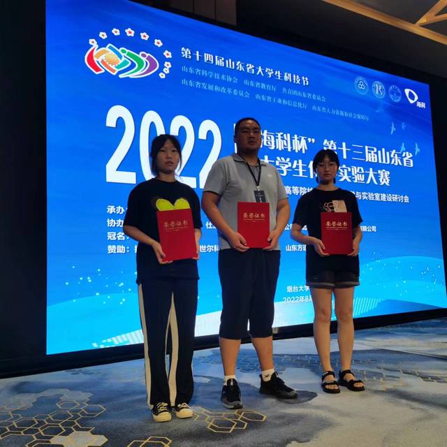 2022年8月17日,第十三届山东省大学生化学实验技能大赛在烟台大学圆满落幕,大赛由山东省科学技术协会、山东省教育厅主办,来自全省30余所高校的学生参加了大赛。我校化学化工与环境工程学院由冯一民、逯纪涛老师带队参加了本次比赛,参赛的3名选手在本届大赛中表现突出,2019级应用化学专业的吕一帆同学获大赛一等奖,2019级应用化学专业的张雪娜同学与2019级化学专业的王洁同学均获大赛二等奖,综合成绩位居全省同类院校之首。