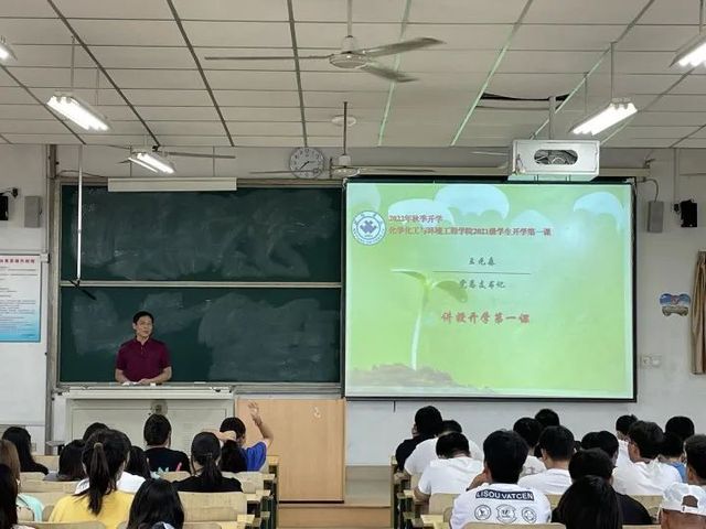 党总支副书记孙玉凤在8212教室为我院2020级部分学生以“奋斗成就未来,努力赢得梦想”为题讲授“开学第一课”。孙书记指出“学在化院”学风建设需要大三年级学生引领,优良院风需要大三年级学生带头营造,通过倒计2023年考研时间勉励同学们珍惜韶华、勤奋学习。随后孙书记与同学们分享了暑期聚焦佩洛西访台、俄乌战争等国家大事的心得,号召同学们厚植爱国情怀,坚决支持国家的一切决定。孙书记特别强调今年是二十大召开之年、学校硕士学位授予单位冲刺决胜之年,作为青年大学生,应当提高政治站位,奋发有为,以实际行动迎接党的二十大胜利召开。最后孙书记借用“船停在港湾最安全,但那不是造船的目的;人活在当下最舒服,但那不是人生的意义”至理名言勉励同学们满怀激情,矢志奋斗,以积极的状态投入新学期。