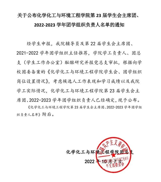 我院第23届学生会主席团、2022-2023学年团学组织负责人名单公布