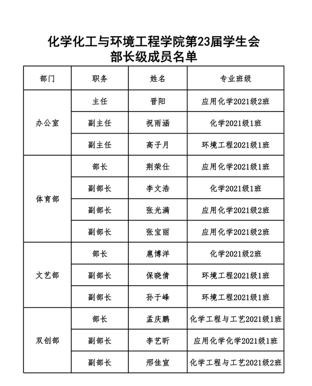 我院第23届学生会、2022-2023学年团学组织部长级成员名单公布