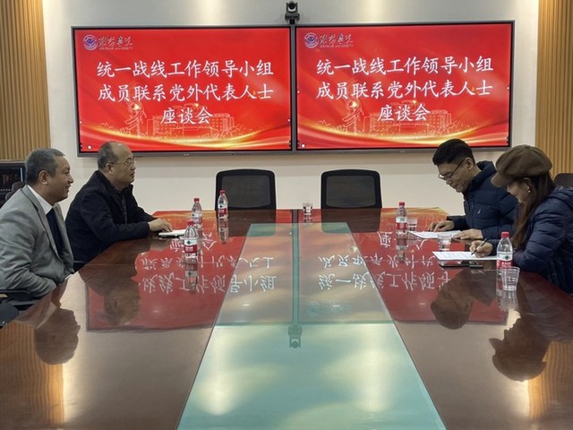 根据学校党委《关于贯彻落实<中国共产党统一战线工作条例>的实施意见》,11月2日,化学化工与环境工程学院召开了统一战线工作领导小组成员联系党外代表座谈会。国际交流合作发展处处长李诚顺,致公党潍坊市委会委员、潍坊学院组织负责人魏建平、致公党党员马海斌参加了座谈。