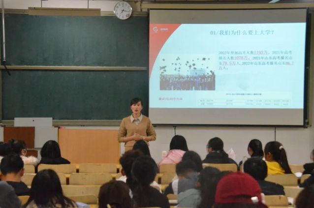 为了提升社会协同育人成效,进一步拓宽大学生就业途径,推动高质量就业,做好“讲述创业故事•传承工匠精神”优秀企业家进校园工作,让同学们认清自我,找准未来目标,掌握人生方向。2022年11月14日晚7点,学院特邀我院友好单位—山东国邦药业有限公司党总支副书记、行政人事部经理刘红于人合楼8222教室为2022级全体新生讲授了一次生动的大学生职业生涯规划专题讲座。
