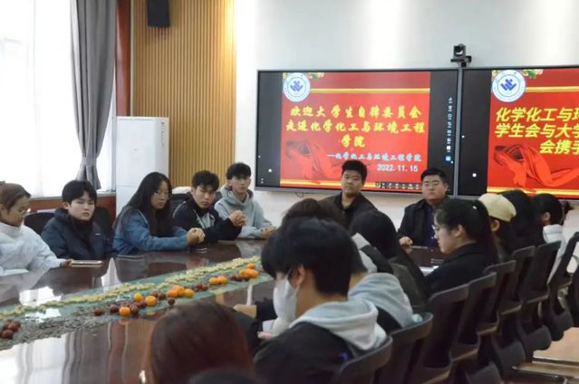 为加强化学化工与环境工程学院与校大学生自律委员会之间的交流协作,增进彼此之间的友谊,让我院了解其相关职能和本职工作,11月15日中午,校大学生自律委员会主席谭浩东及各部门负责人到人合楼8213教室座谈,同我院学生会主席牛艺文及各部门部长进行交流、解决问题,便于之后双方工作的开展。
