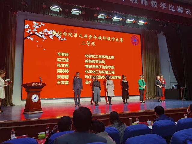 11月10日,潍坊学院第九届青年教师教学比赛决赛在图书馆报告厅举行。我院青年教师辛春玲、周婷婷参加并荣获比赛二等奖。