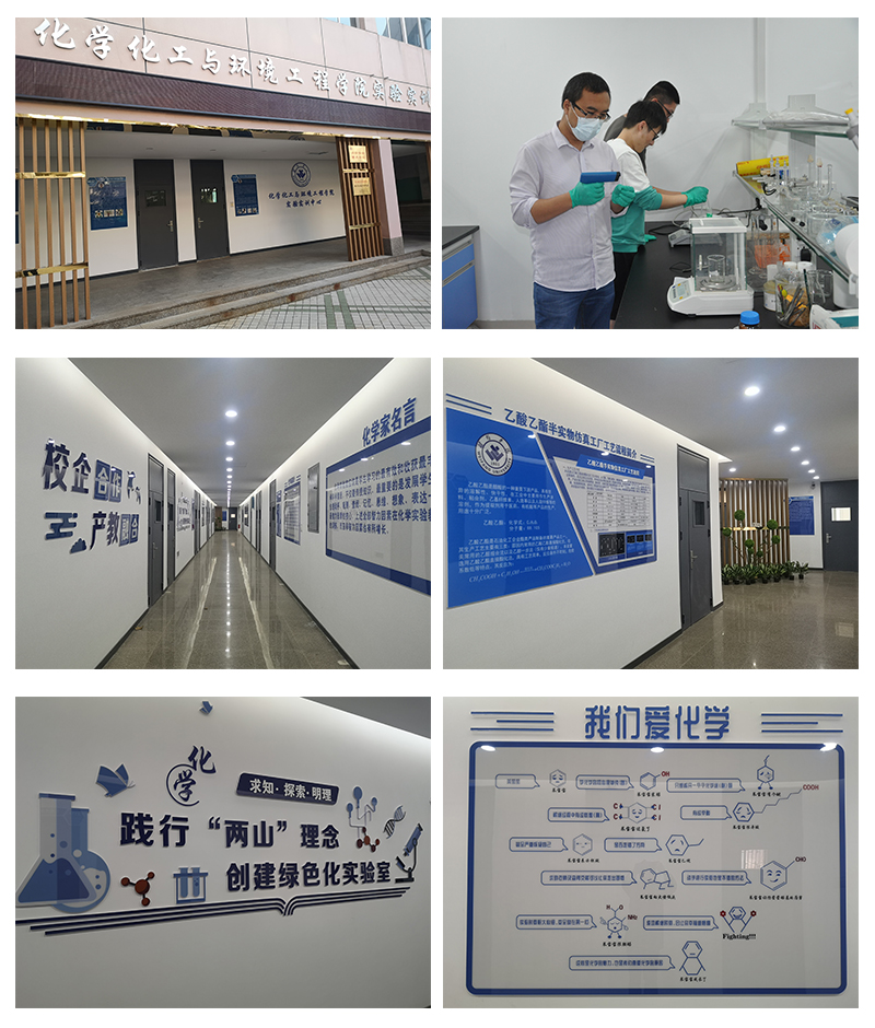 目前,改造已初步完成,实验中心面貌焕然一新。现在实验室内整洁明亮,室外建成了化学文化长廊,墙上制作了颇具化学特色的标语:“我们爱化学”引导学生们更加热爱专业;“践行‘两山’理念,创建绿色化实验室”强化师生绿色生态环保理念;“校企合作,产教融合”则为贯彻落实学校“早日建成优势特色突出的高水平应用型大学”的目标,构建应用型人才培养体系。同时,学院利用山东省研究生教育质量提升计划项目支持经费300余万购置了乙酸乙酯半实物仿真、液质联用仪、X射线衍射仪、电感耦合等离子发射光谱仪等实训和仪器分析设备,升级后,实验设备更加先进,安全设施更为完善,实验室功能得以大大提升。