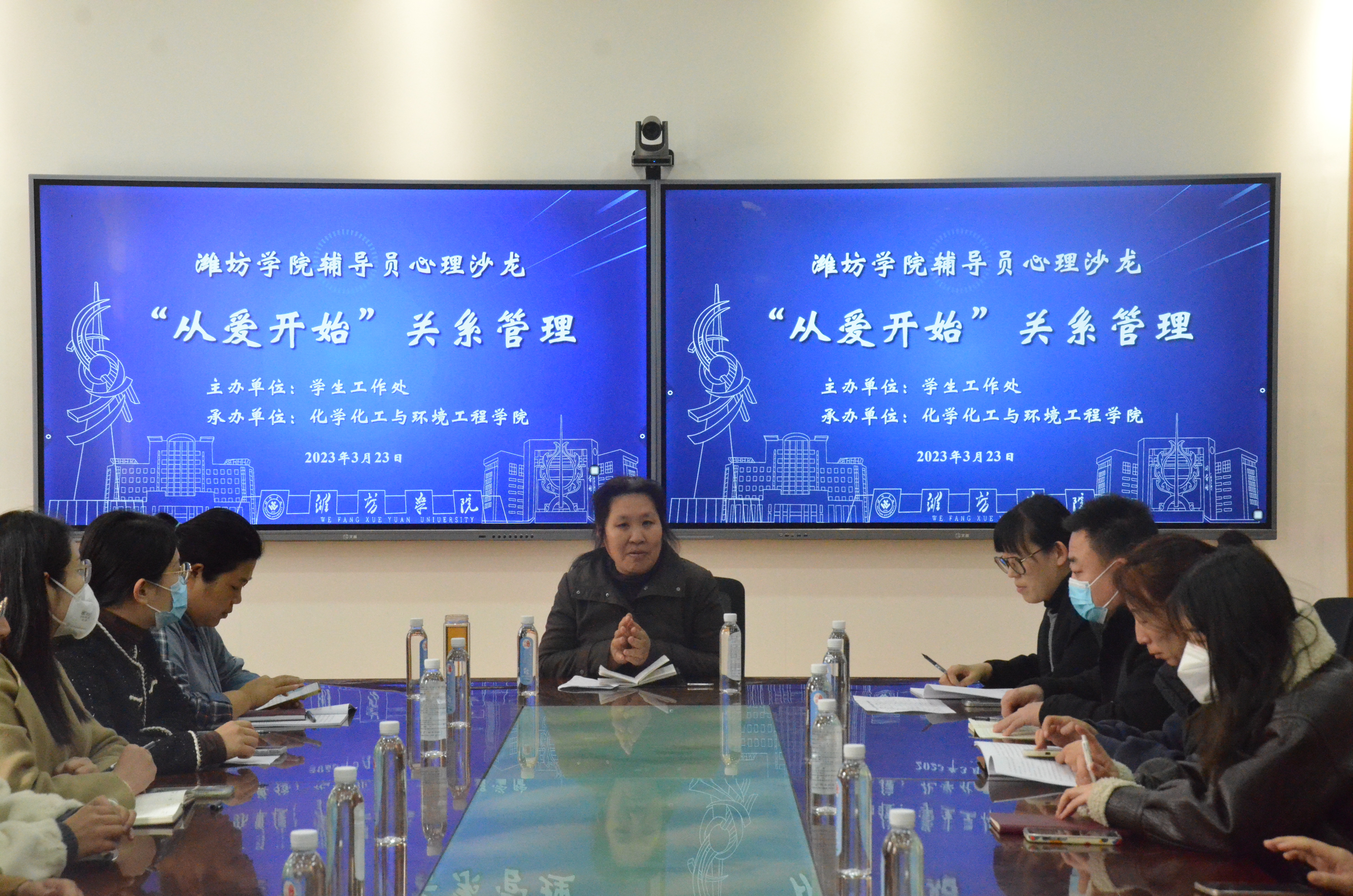 3月23日下午,由学生处主办,化学化工与环境工程学院承办的以“‘从爱开始’关系管理”为主题的潍坊学院辅导员心理沙龙活动在人合楼8213举办,学院特邀学校大学生心理健康教育中心苑莉老师到场指导交流,各学院心理辅导站站长及化学化工与环境工程学院全体辅导员参加了此次沙龙,化学化工与环境工程学院副书记孙玉凤主持了本次活动。
