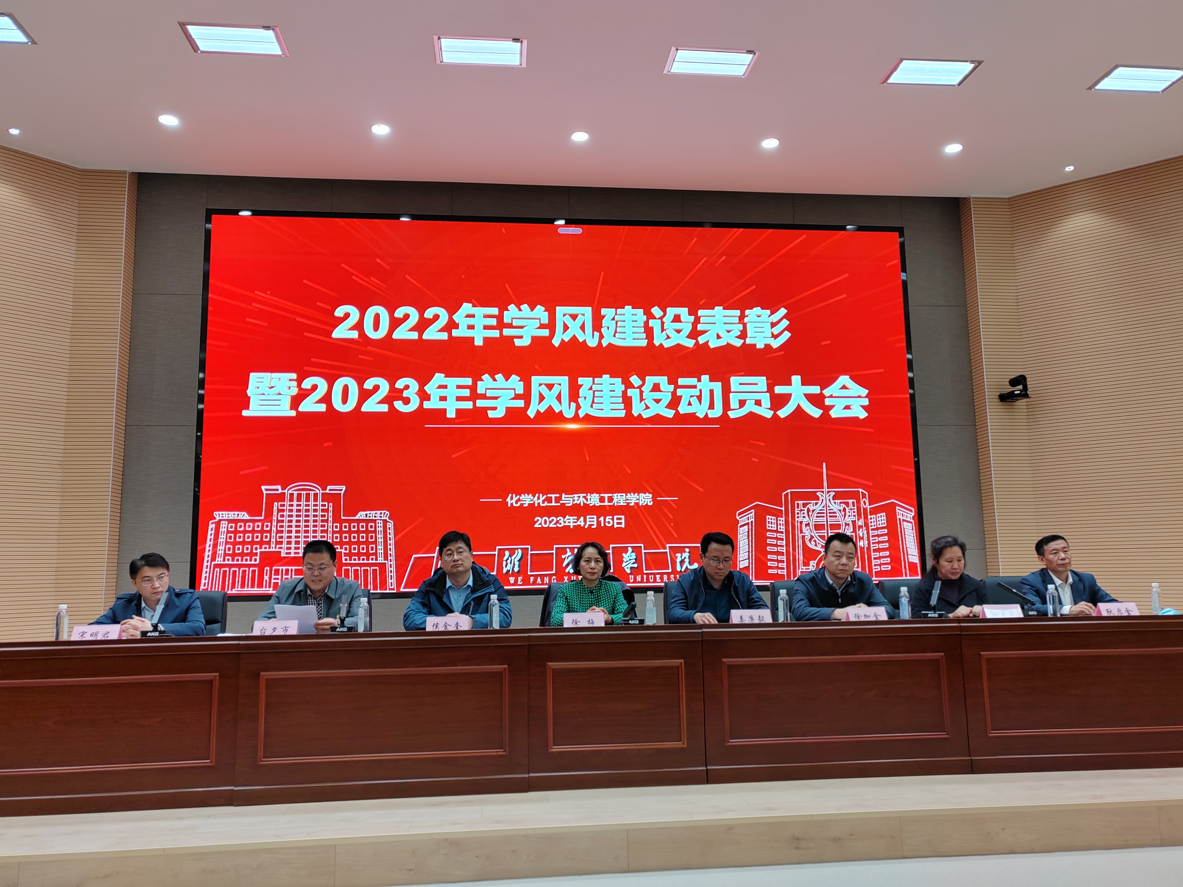 为落实好学校党委提出的2023年学团工作质量提升目标,持续深化“学在化院”学风建设,巩固优化立体化、精细化、全程化的学风育人体系,4月15日上午,化学化工与环境工程学院在4号楼学术报告厅召开2022年学风建设表彰暨2023年学风建设动员大会。学校党委副书记徐梅、学生工作处处长姜廉毅、教务处处长侯金奎、团委书记徐加金、学院院长台夕市、副院长宋明君、“胜达科技奖学金”评委会主任耿启金教授、学院全体辅导员与160多名学生代表参会,会议由学院党总支副书记孙玉凤主持。