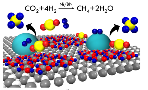 为克服热力学和动力学阻碍,CO2甲烷化反应过程必须在非常高的温度和压力条件下运行,才能获得工业级转化率、反应速率和选择性。姜在勇教授针对该问题,开发出一种新型镍-氮化硼催化剂,成功地在常压温和条件下,通过光热催化技术,开发出具有超高CO2转化率(87.68%)、高CO2催化速率(2.03 mol gNi-1h-1)、高稳定性、高CH4选择性(99.83%)的四高催化剂,进一步扩充了当前国内自主设计的、紧缺的、同时具有四高活性的CO2催化制甲烷的光热催化剂。