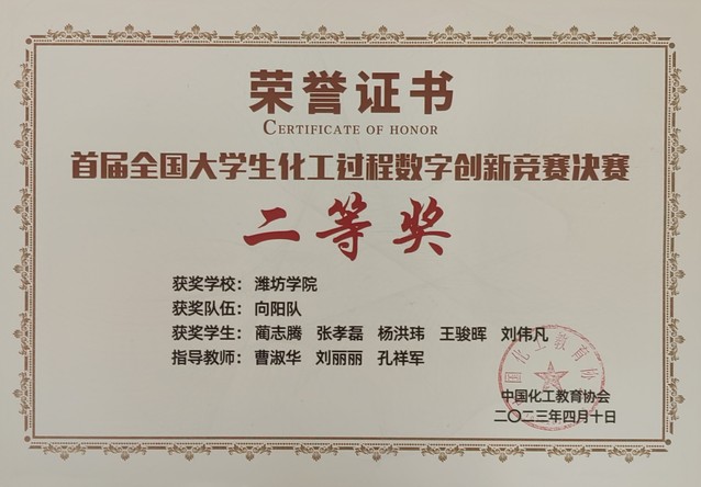 本次大赛吸引了本科生和研究生参与,共有来自全国高校的60支队伍进入最后决赛阶段,其中本科生队伍47支。我院化学工程与工艺专业本科生蔺志腾、张孝磊、杨洪玮、王骏晖、刘伟凡组成的代表队在竞赛中获得二等奖,充分展现了我校学子扎实的理论知识、过硬的专业能力和较高的综合素质,有力诠释了化学工程与工艺专业跨学科融合能力,为应对新一轮科技革命和产业变革,更好实现“新工科”建设目标打下坚实基础。