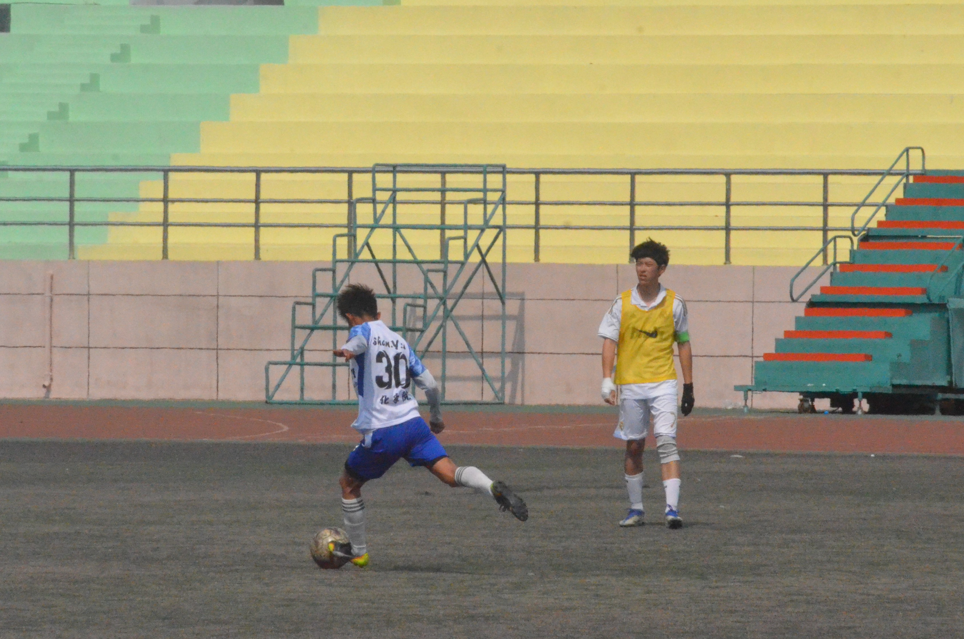 随着一声哨响,比赛正式拉开了帷幕。正午的阳光正热,但这并不能阻挡球员们激情,双方都使出全力,你拼我抢,比赛很快进入了状态。我院球队队员以精湛的脚法,完美的盘带,犀利的射门和精彩的配合博得赛场上观众的阵阵掌声。虽然技法精湛,但双方极致拉扯,回防,突进,上半场结束比分仍僵持在0:0。中场休息期间双方队长进行了简短的战术安排和人员调整。下半场开始,我院球员拿出了更好的状态,他们不留余力的奔跑,很快我院一前锋带球突破像一阵旋风,左、右边锋密切配合着他,接着他躲过对方球队后卫的封堵,举脚一记怒射,“呼——”球带着风声飞向球门,我院拿下了全场比赛的第一分。随后,我院球员们以干净的抢断和精湛的射门,又连进两球。最终,我院以3:0大胜政法学院,成功闯进四强。