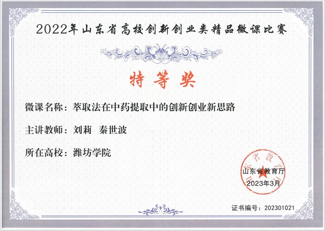 山东省高校创新创业类精品微课比赛特等奖 | 2023 | |