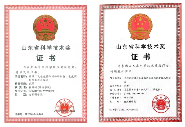 科研 | 山东省自然科学奖二等奖(2项) | 2019、2022 |