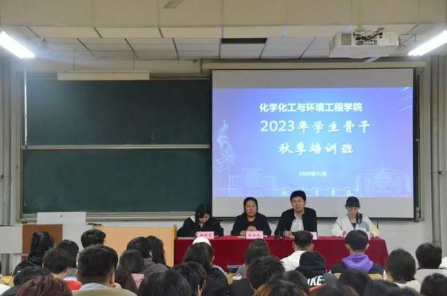 为进一步加强学生骨干队伍建设,提升学生骨干队伍的工作能力和综合素质,根据学校开展2023年秋季学生骨干培训的要求,2023年11月8日晚7点,化学化工与环境工程学院于人合楼8222教室举行学生骨干秋季培训的开班仪式暨第一次集中培训。党总支副书记孙玉凤、团总支书记马永生、正科级辅导员韩靖雯、副科级辅导员田志丹出席开班仪式并分别为学生骨干们讲课。学生学生会等团学组织全体成员、2021级2022级2023级全体班长团支书等学生骨干参加了本次集中培训。