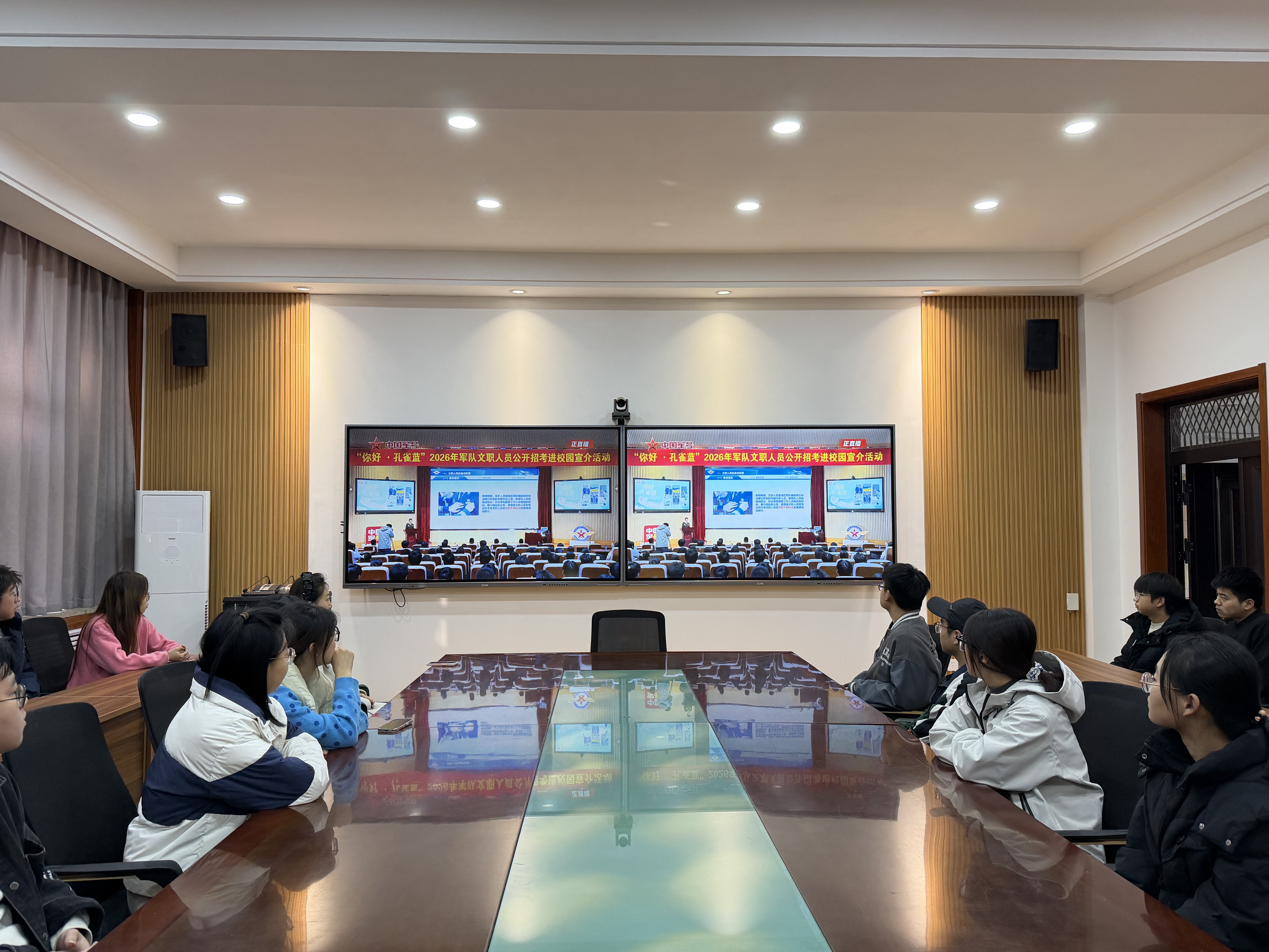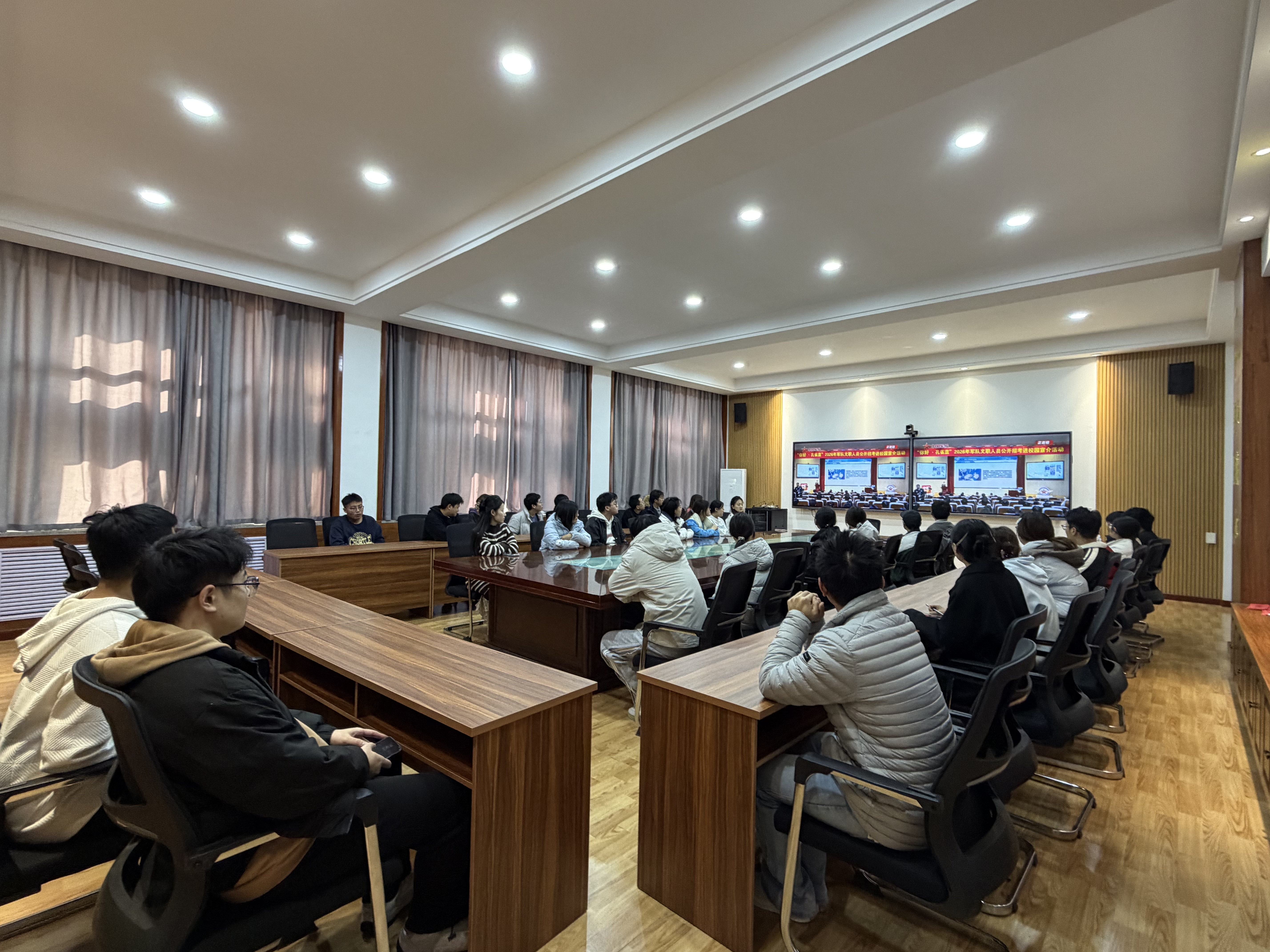 为帮助学院2026届毕业生深入了解军队文职人员招考政策,拓宽就业选择渠道,10月27日下午,学院按照学校统一部署,组织2026届毕业生观看“你好・孔雀蓝”招录宣介进校园活动直播,为毕业生搭建起与军队文职岗位对接的“云端桥梁”。