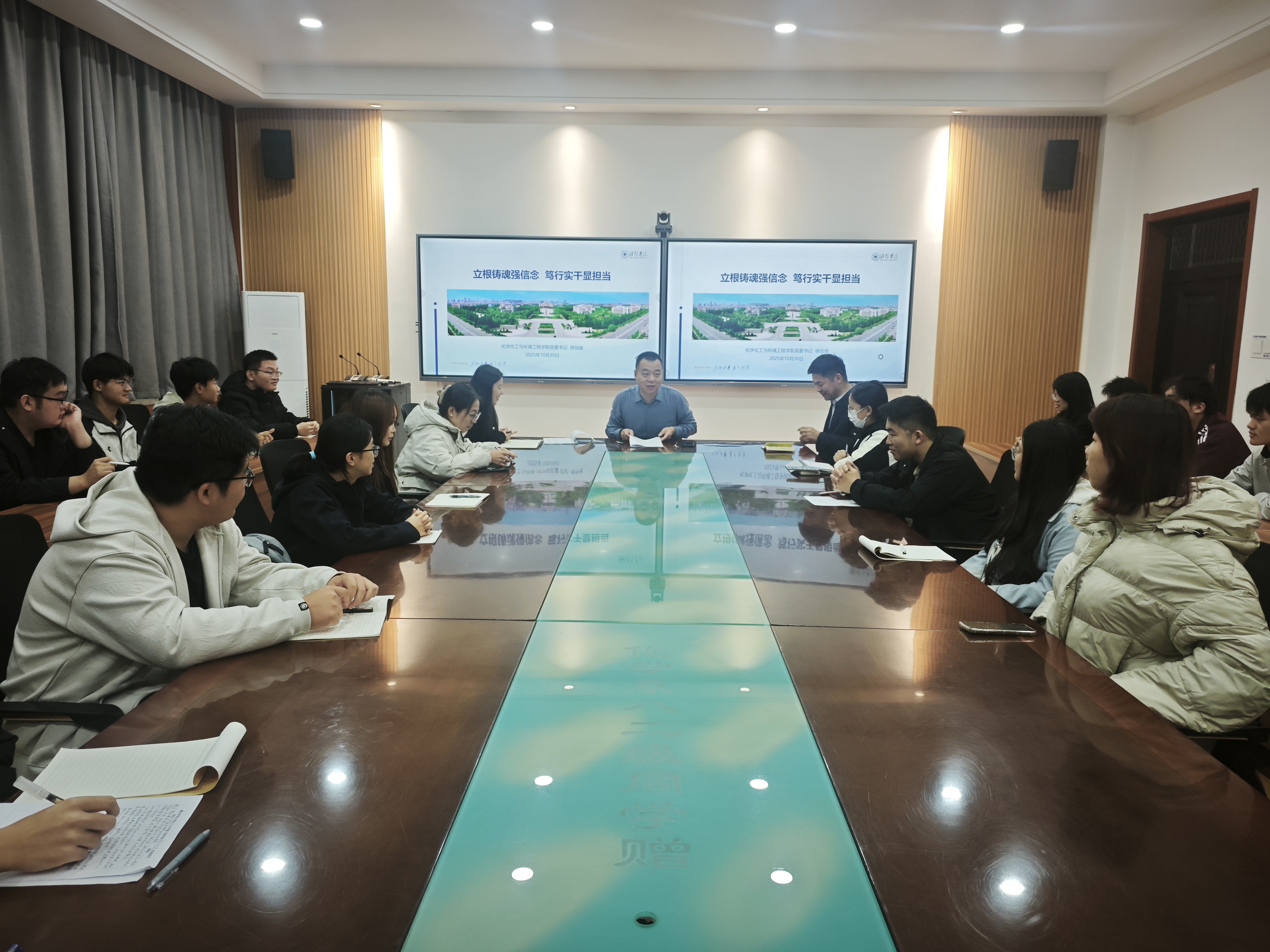 10月30日,学院党委书记徐加金围绕“立根铸魂强信念,笃行实干显担当”主题,面向学院团学骨干开展思政教育专题授课。学生工作办公室主任马永生主持活动,团委负责人赵文婷、辅导员张惠及40余名团学骨干参加学习。
