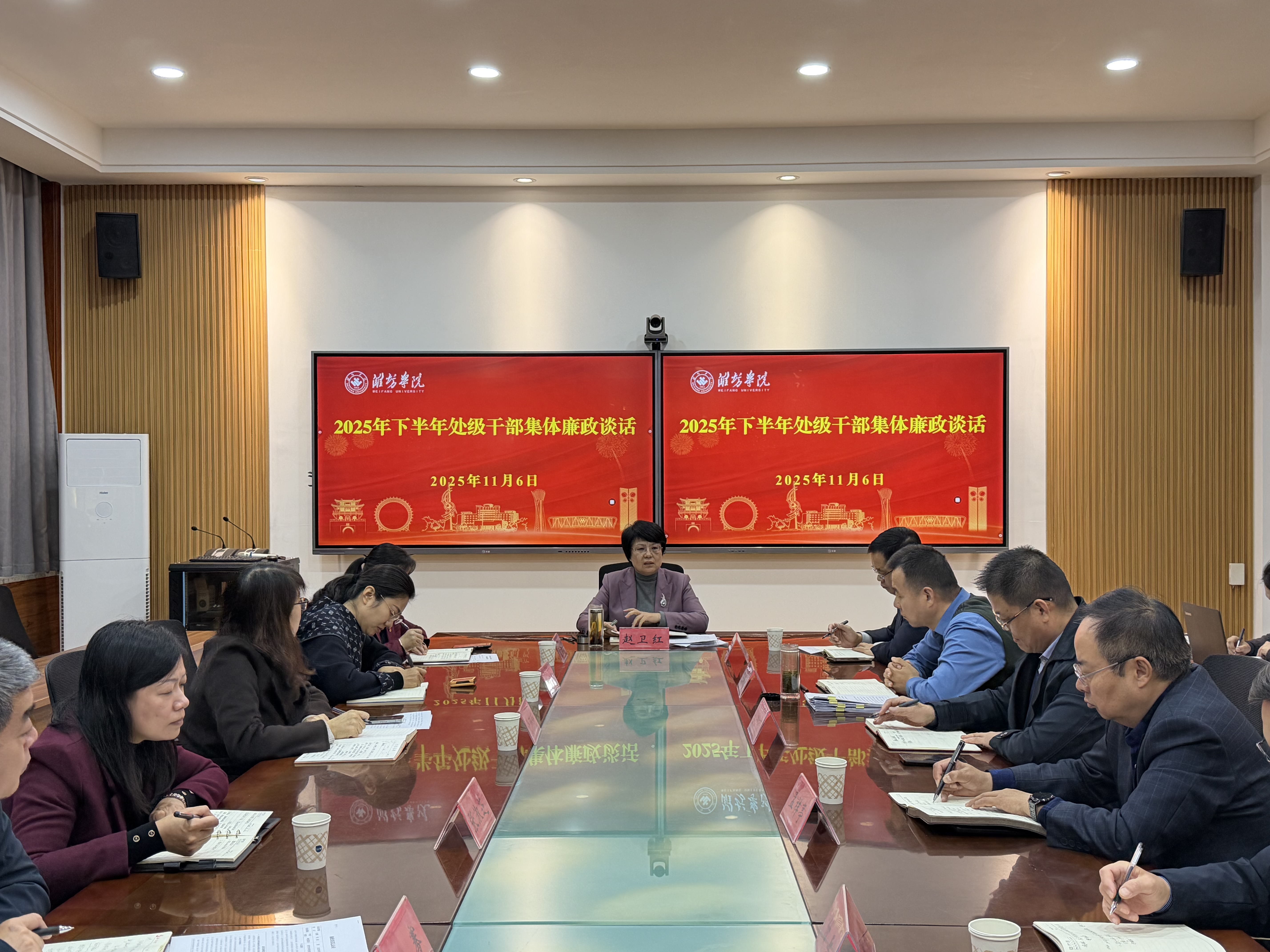 在廉政谈话中,赵卫红指出,当前学校正处于从“起势”向“成势”跨越发展的关键阶段,面对新形势新任务新要求,全体处级干部要始终绷紧廉洁自律这根弦,以更高标准严格要求自身,切实强化纪律观念和规矩意识,坚持自重、自省、自警、自励。通过讲述“四知拒金”的廉政典故,深入阐释“慎独”的深刻内涵,要求党员干部在缺乏监督时仍坚守原则、严守底线,做到心有所畏、言有所戒、行有所止,始终保持清正廉洁的政治品格。全体处级干部作为学校事业发展的中坚力量,必须坚定发展信心、强化责任担当,以“干字当头、奋勇争先”的精神状态扎实推进各项工作落实。