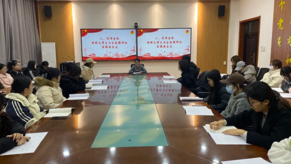 为深入学习贯彻党的二十届四中全会精神,引导青年团员坚定理想信念、勇担时代使命,11月26日,在人合楼8213会议室,学院团委组织开展“深学四中全会精神,践行青年时代担当”主题团课。本次团课由学院团委负责人赵文婷主讲,团委组织宣传部成员及入团积极分子参加了本次学习。