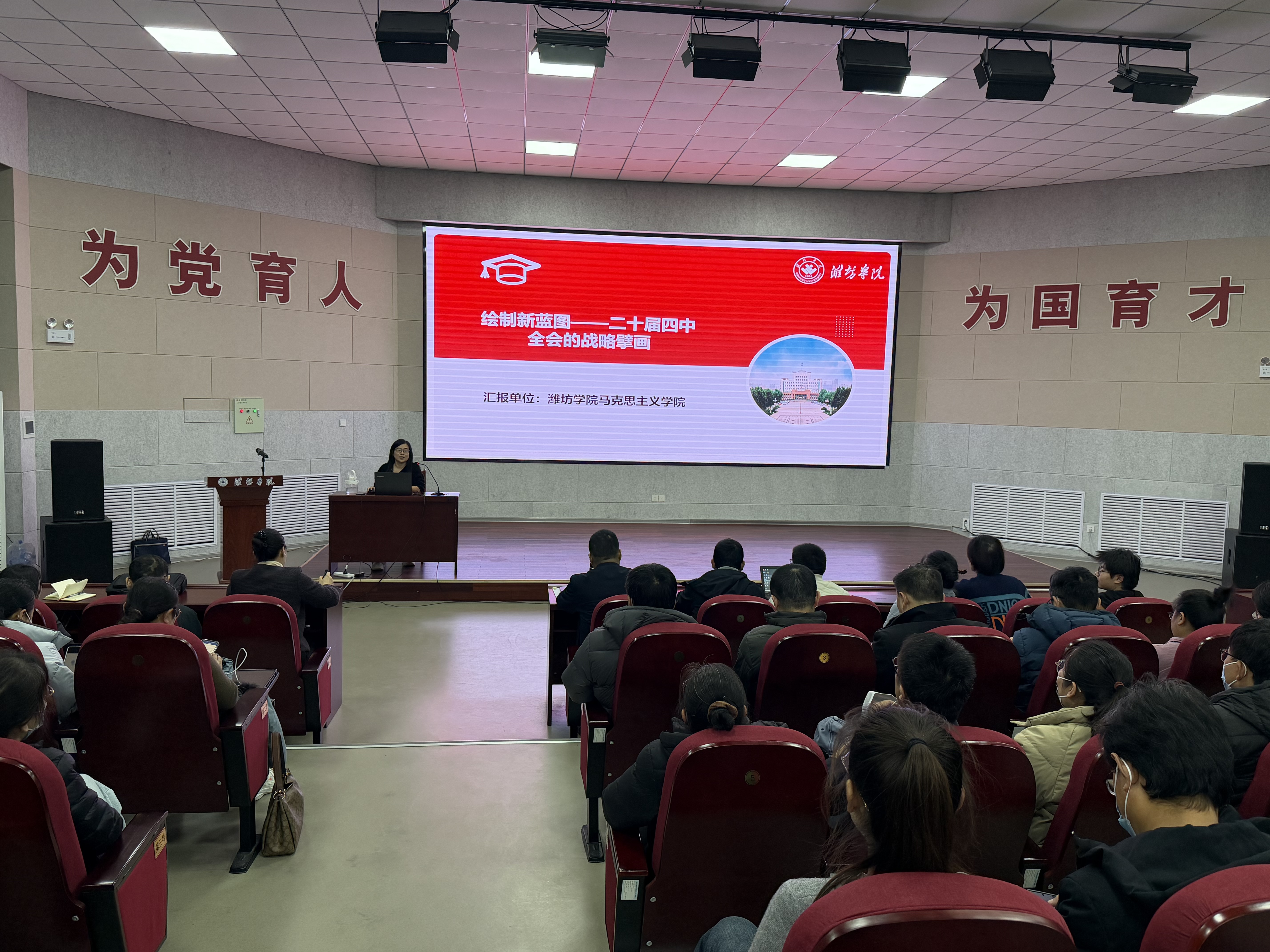 为深入学习贯彻党的二十届四中全会精神,切实将全院师生的思想和行动统一到党中央决策部署上来,11月28日,学院在2109报告厅组织召开专题宣讲报告会。学校宣讲团成员、马克思主义学院马克思主义基本原理教学部主任邹雷靖应邀作宣讲报告,学院党委书记徐加金主持会议,学院全体教师及150余名学生代表参加学习。