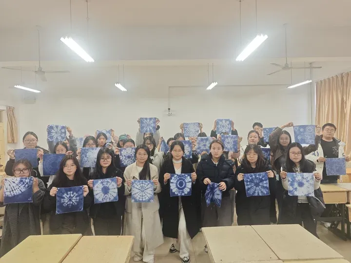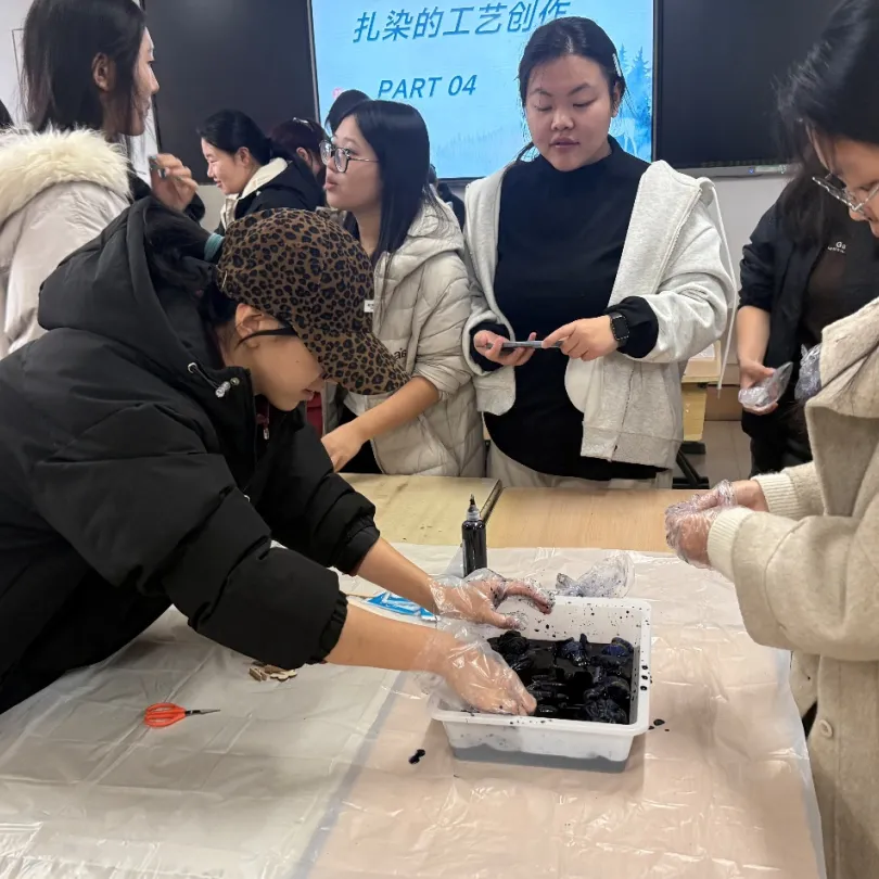为深挖中华优秀传统文化内涵,推动扎染非物质文化遗产的发展,促进科学与文化深度融合,增强青年学子的文化认同感与创新精神,11月29日下午,学院团委组织宣传部于人合楼8209教室举办“云染霞章,化韵同行”扎染活动。活动在蓝白交织的创作中,让非遗之美与化学之智碰撞出别样火花。