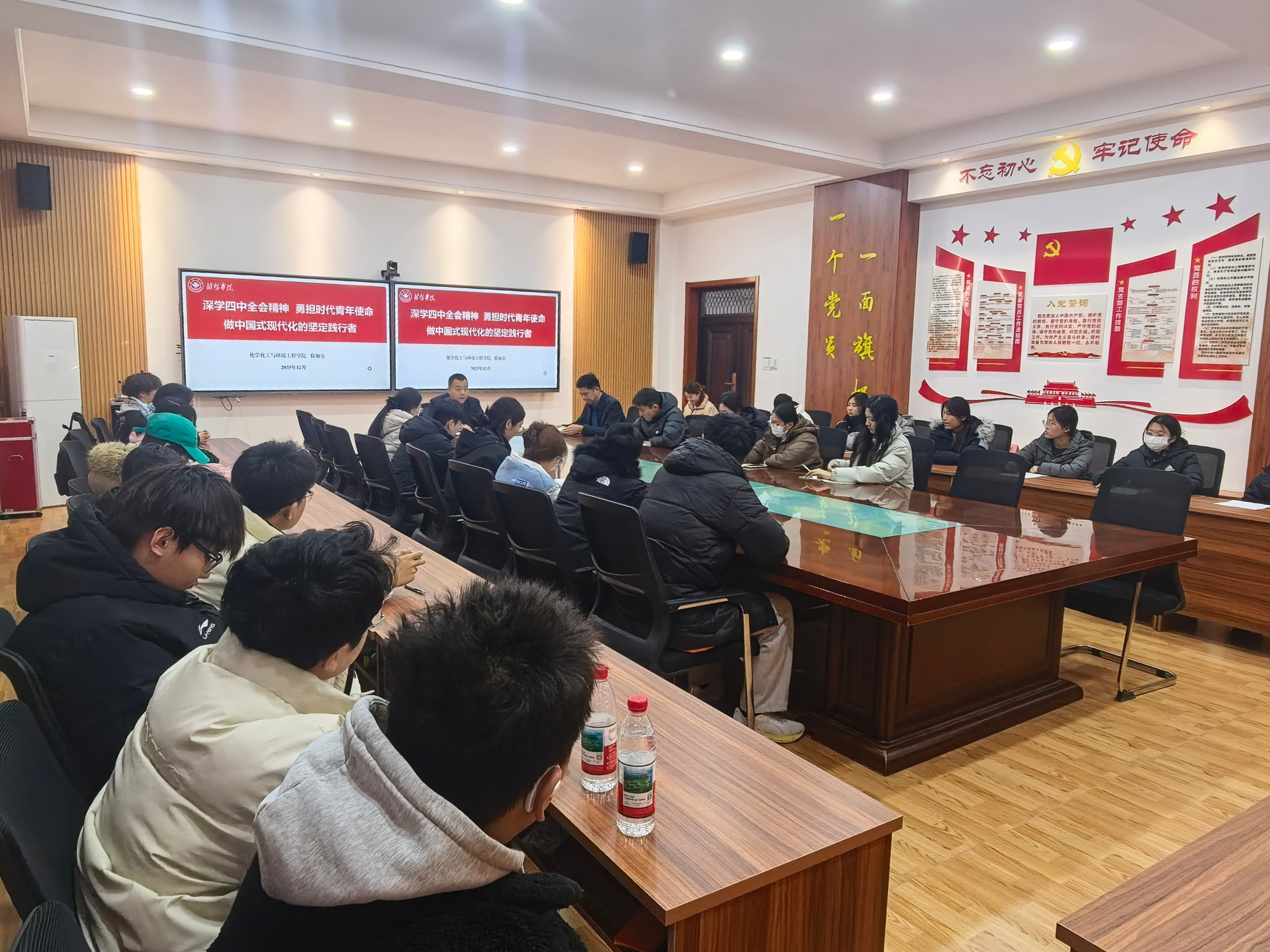 12月5日,学校学习贯彻党的二十届四中全会精神宣讲团成员、学院党委书记徐加金以“深学四中全会精神,勇担时代青年使命”为题,为青年学生宣讲党的二十届四中全会精神,并为学生团干部代表讲授团课,学生工作办公室主任马永生主持,团委负责人赵文婷、学生会主席团成员和2024、2025级各班团支部书记参加宣讲报告会。