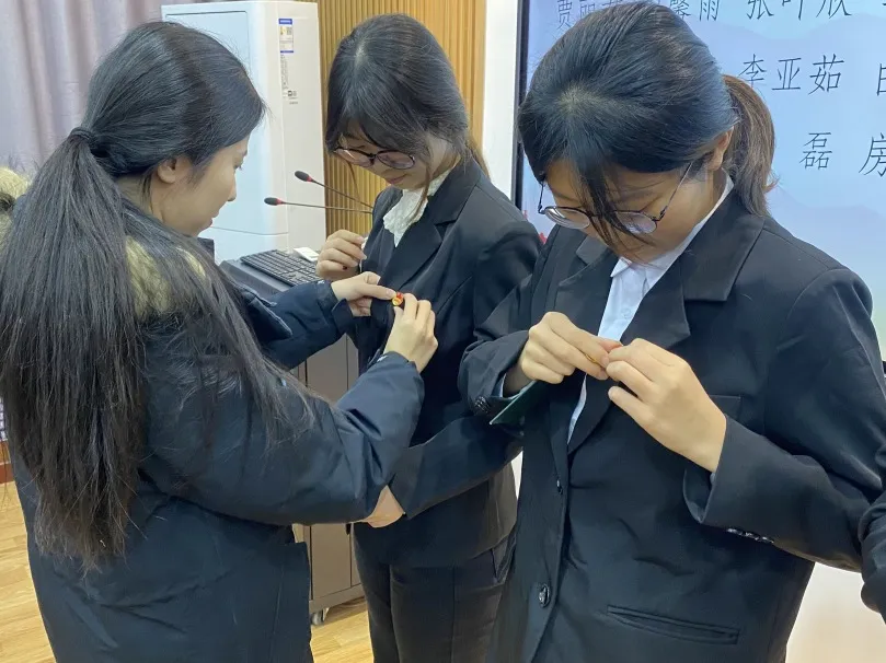 庄严的国歌声奏响,入团仪式正式拉开帷幕,赵文婷宣读新团员名单,逐一为新团员颁发团员证、佩戴团徽,熠熠生辉的团徽承载着光荣使命,让新团员深切感受到入团的荣耀与责任。在鲜艳的团旗见证下,团委组织宣传部部长管代第带领新团员高举右拳,面向团旗庄严宣誓。铿锵有力的誓言响彻会场,既饱含青春热血,更让入团初心在铮铮誓言中愈发坚定。