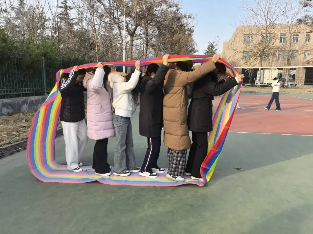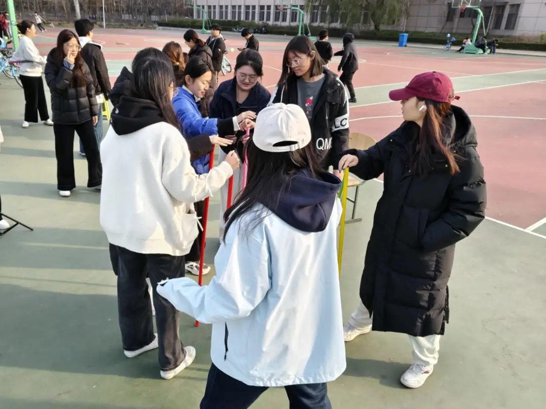 活动现场氛围热烈而温馨,各宿舍队伍以“舍友携手,心有灵犀”为共同口号,迅速投入竞技与协作之中。“六人七足”项目中,参赛舍友们肩并肩、手挽手,喊着整齐划一的节拍稳步前行,步伐铿锵间尽显同心协力的奋进姿态;在“一圈到底”“珠行万里”等项目里,大家分工协作、互帮互助,在欢声笑语中突破一个个小挑战;“不倒翁森林”“无敌风火轮”则让同学们在趣味互动中放松身心,充分展现出青春昂扬的精神风貌。整场活动既充满竞技的紧张感,更洋溢着互助友爱的温情,为冬日校园增添了浓厚的活力气息。