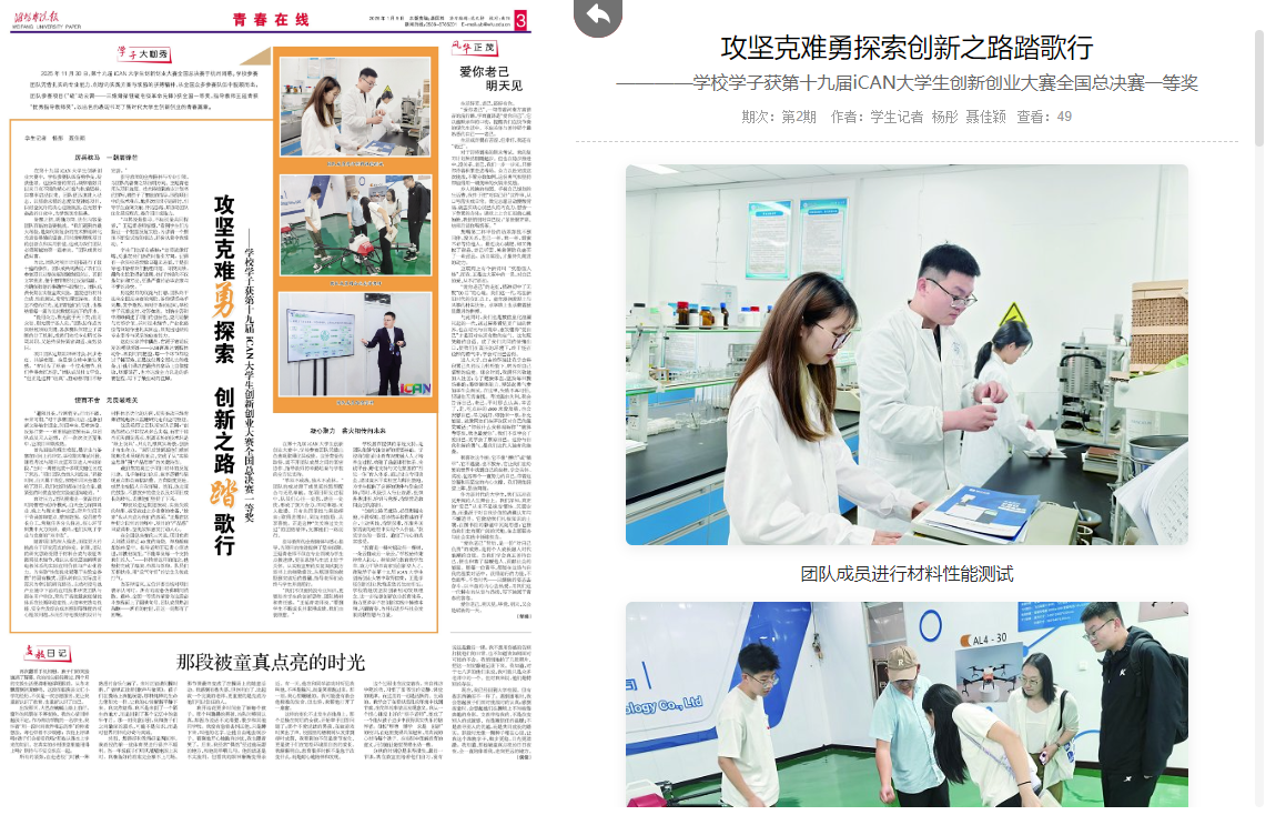 在第十九届iCAN大学生创新创业大赛中,学校参赛团队凭借出色表现取得优异成绩。这份荣誉的取得,离不开团队成员之间的紧密协作、指导教师的辛勤培育与学校的全方位支持。