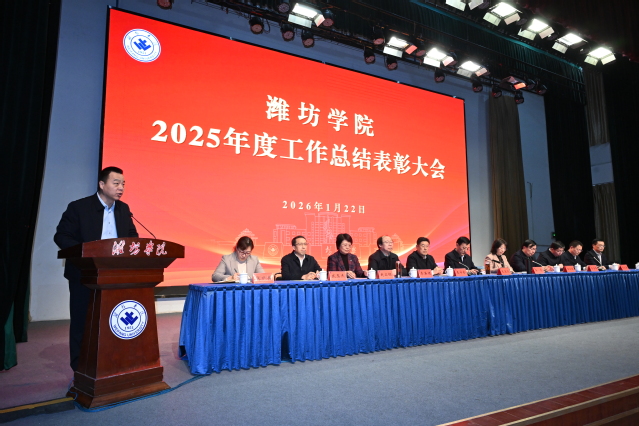 1月22日,学校召开2025年度工作总结表彰大会,党委书记来逢波出席会议并讲话,党委副书记、校长王霞主持会议,党委班子成员出席会议。党委副书记王守全,党委委员、副校长苗金春分别宣读有关表彰决定。学院凭借扎实的工作成效,荣获2025年度高水平贡献奖第一等次“卓越贡献奖”、中层单位绩效考核“先进单位”和党建考核“好”等次单位。学院党委书记徐加金、院长台夕市分别代表学院上台领奖,徐加金作为获奖单位代表作大会交流发言。