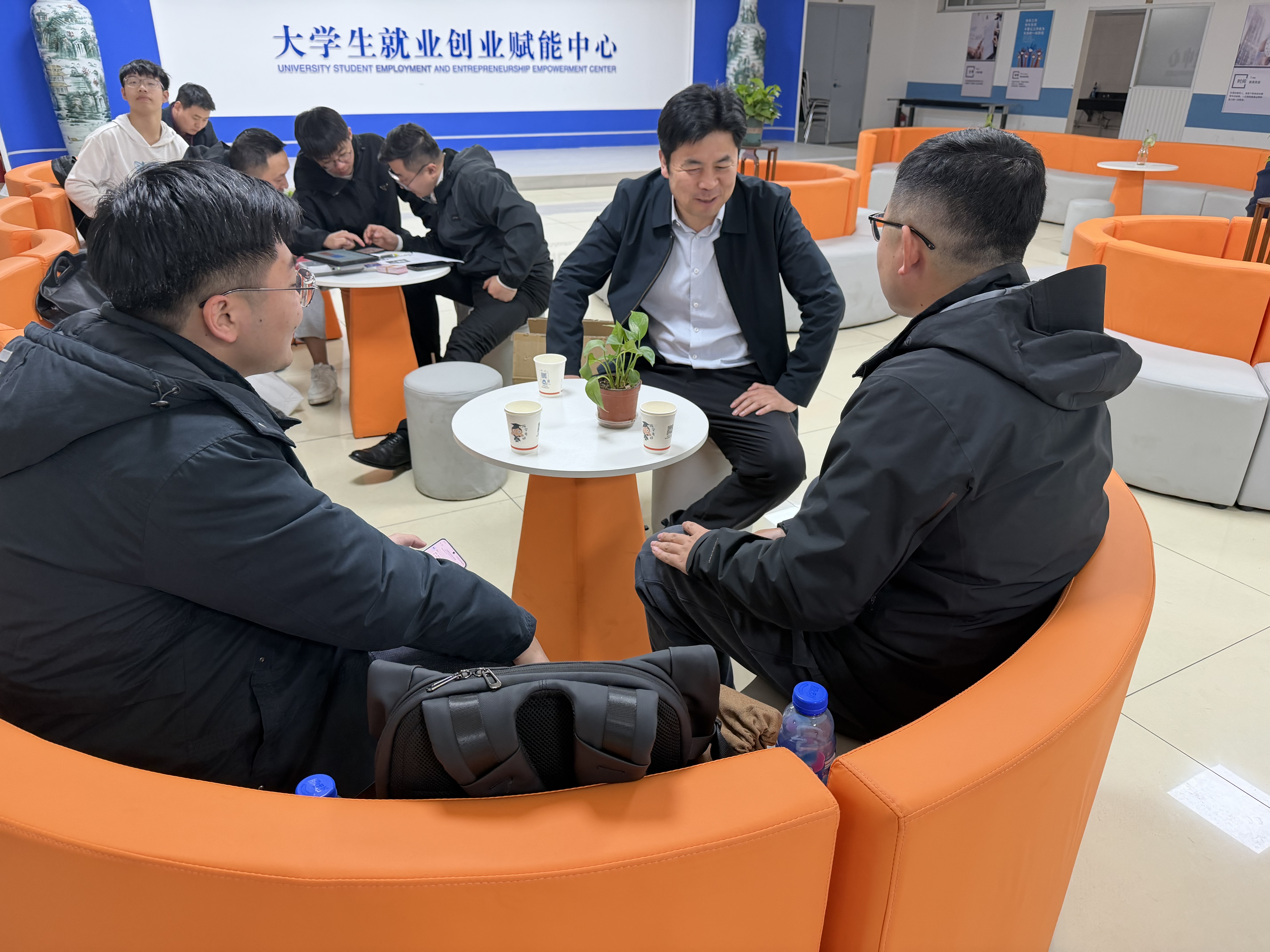 宣讲之前,学院学生工作办公室主任马永生与四家企业代表进行座谈交流。马永生对各企业的到来表示热烈欢迎与衷心感谢,介绍了学院的学科建设、人才培养特色及2026届毕业生整体情况。企业代表们介绍了企业情况,表达了与学院深化合作、吸纳优秀毕业生的意愿。