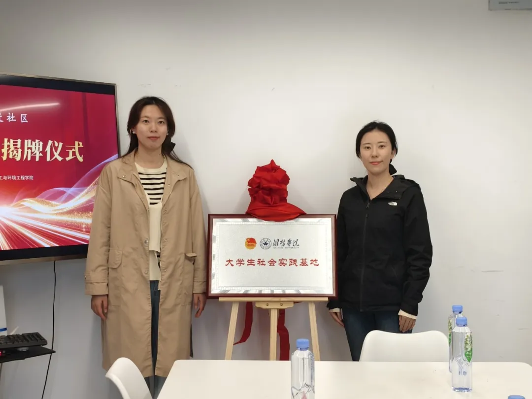 仪式现场庄重有序,校社双方深入交流、共谋发展。东园社区书记杨娜详细介绍社区基本情况、服务阵地与民生需求,阐明校社共建对优化社区服务、助力青年成长成才的重要意义。赵文婷结合学院专业特色,介绍在环保科普、公益实验、社区服务、文明创建等方面的优势与规划,就志愿服务团队组建、活动常态化开展、项目化落地等事项与社区达成一致意见。随后,杨娜与赵文婷共同为社会实践基地揭牌,标志着校社合作迈入规范化、常态化新阶段。仪式最后,与会人员合影留念,定格校社携手共进的美好时刻。